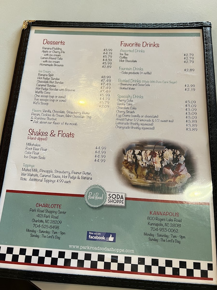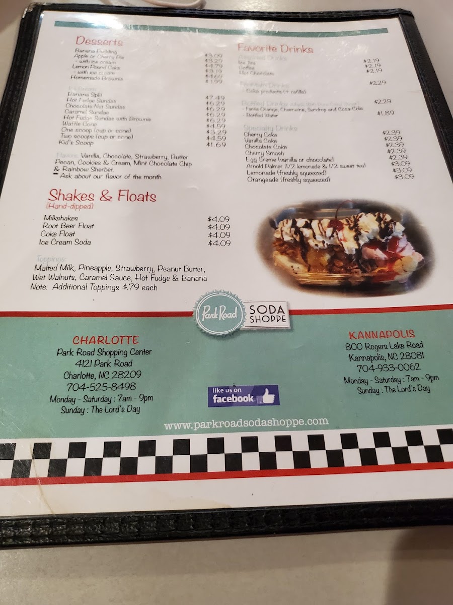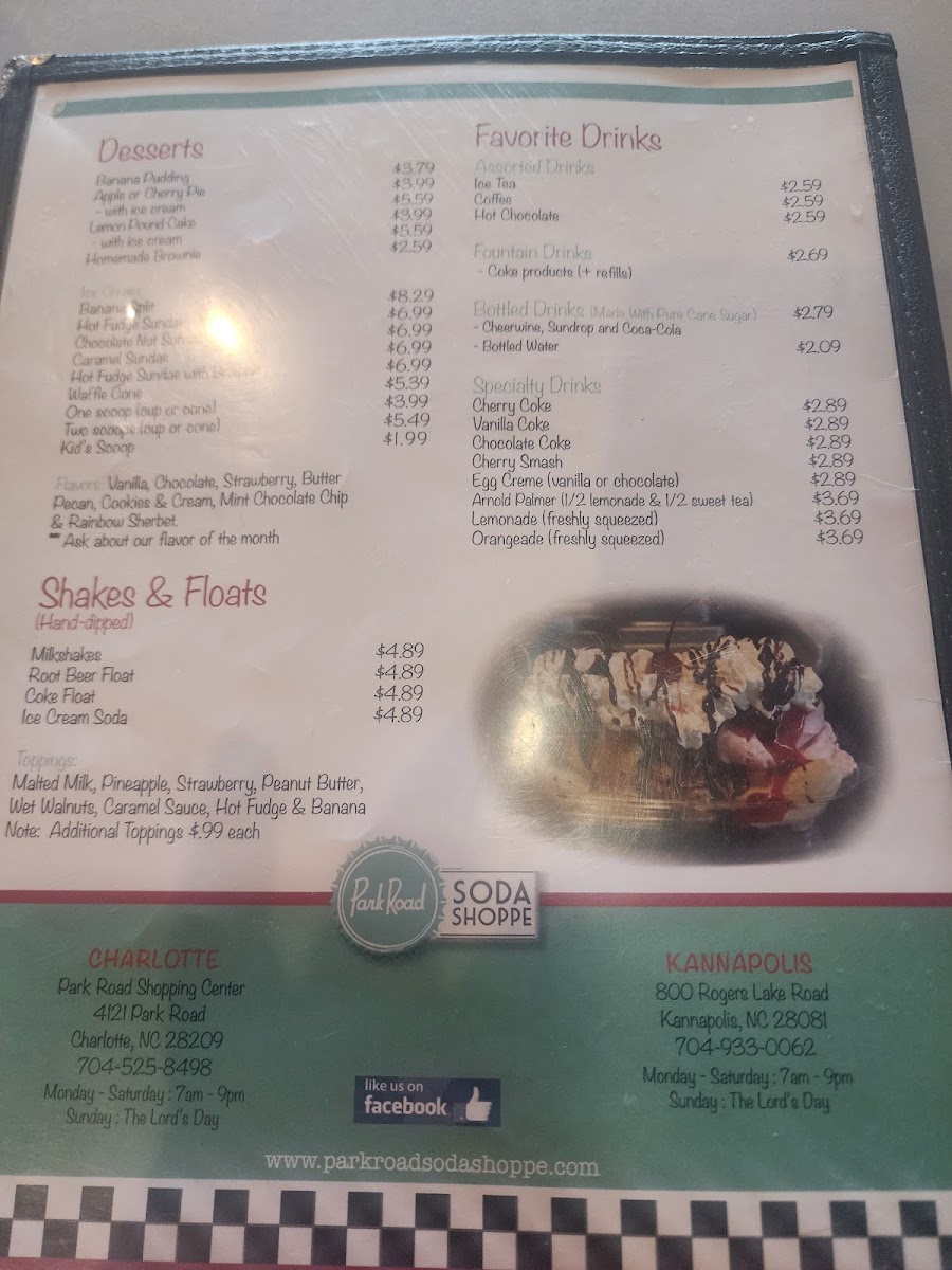 Overall, the menu at Park Road Soda Shoppe is a great reflection of classic breakfast comfort food with a focus on simple, quality ingredients. Whether you opt for a plate, an omelet, a biscuit, or a sandwich, you'll find a variety of options to enjoy at reasonable prices.